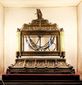 Но ночью, когда он спал среди двух воинов, ангел Господень разбудил его, толкнув в бок, и вывел из темницы, причем железные вериги упали с рук апостола, как повествуется об этом в книге Деяний Апостольских (Деян.12:1). Весть о чудесном избавлении Петра от оков и темницы разошлась по всему Иерусалиму, – и некоторые из верующих, взяв тайно эти вериги, стали хранить их у себя, чтобы, смотря на них, иметь пред глазами как бы самого первоверховного апостола Петра, который, немедленно по выходе из темницы, отправился для проповеданья слова Божьего в другие страны и не возвращался в Иерусалим. Эти вериги получили от тела апостола, который был крепко ими связан, целебную силу. Известно, что головные повязки и платки святого апостола Павла исцеляли болезни и изгоняли нечистых духов, потому что были пропитаны потом его (Деян.19:15); такое же действие оказывали вериги святого Петра, потому что некогда плотно охватывали тело апостола. Верующие с глубоким благоговением чтили эти честные вериги, воздавали им поклонение и тщательно хранили их, как дорогое наследство, из рода в род, причем каждый раз родители – детям, а те – своим наследникам, объясняли, какого Великого узника касались эти вериги и чьим телом они освящены. Так перешли они по наследству в руки святейшего иерусалимского патриарха Ювеналия. И когда благочестивая царица Евдокия, супруга царя Феодосия Младшего615, возвращалась в Царьград из Иерусалима, – где, за время своего пребывания, построила много церквей и украсила из своих царских средств святые места, – то патриарх Ювеналий подарил ей за ее благочестие и любовь к святыне немало разных духовных сокровищ. В числе их он подарил ей и эти честные и чудотворные вериги святого апостола Петра616. По возвращении в Царьград, Евдокия одну веригу принесла в дар храму святого апостола Петра, находившемуся внутри Великого Софийского собора617, а другую послала в Рим своей дочери Евдоксии, которая была замужем за римским царем Валентинианом III-м. 618 Благочестивая, подобно матери, Евдоксия с любовью приняла этот драгоценный дар и, построив на Эксквилийской горе храм во имя святого апостола Петра, положила там эту веригу, вместе с найденной в Риме другой веригой святого апостола Петра, которою связал его во время мучений Нерон619. После того было установлено совершать 16 января праздник поклонения этим честным веригам620, в память и честь святого апостола Петра и во славу Христа Бога нашего.