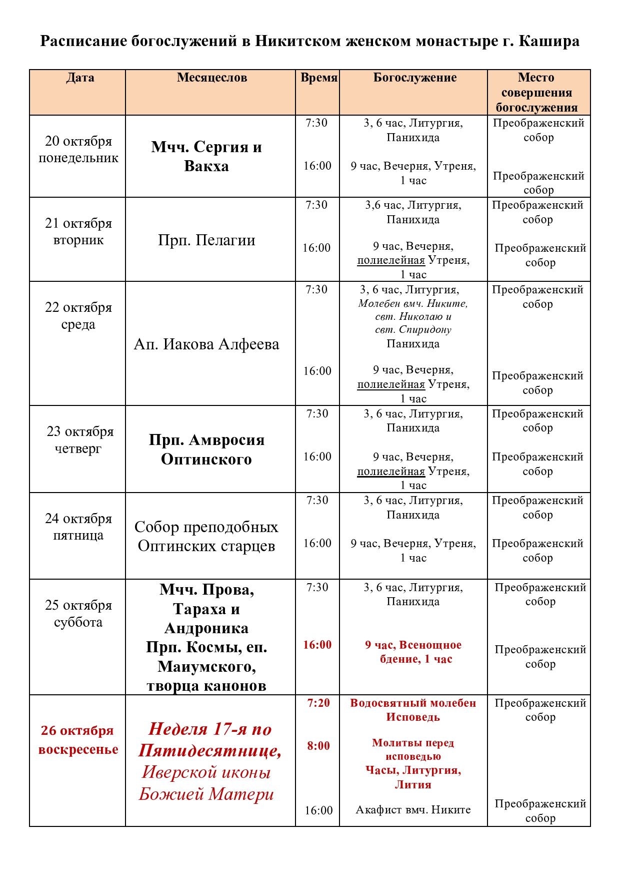 По воскресным и праздничным дням монастырь открывается в 8.00 утра.